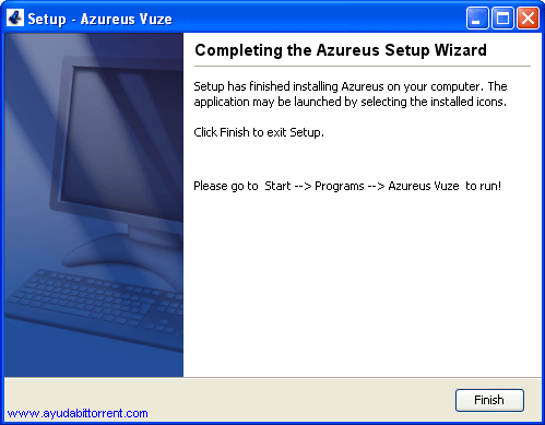 Instalacion Azureus Vuze Completada Si se pulsa en el botón Finish la instalación se habrá finalizado.