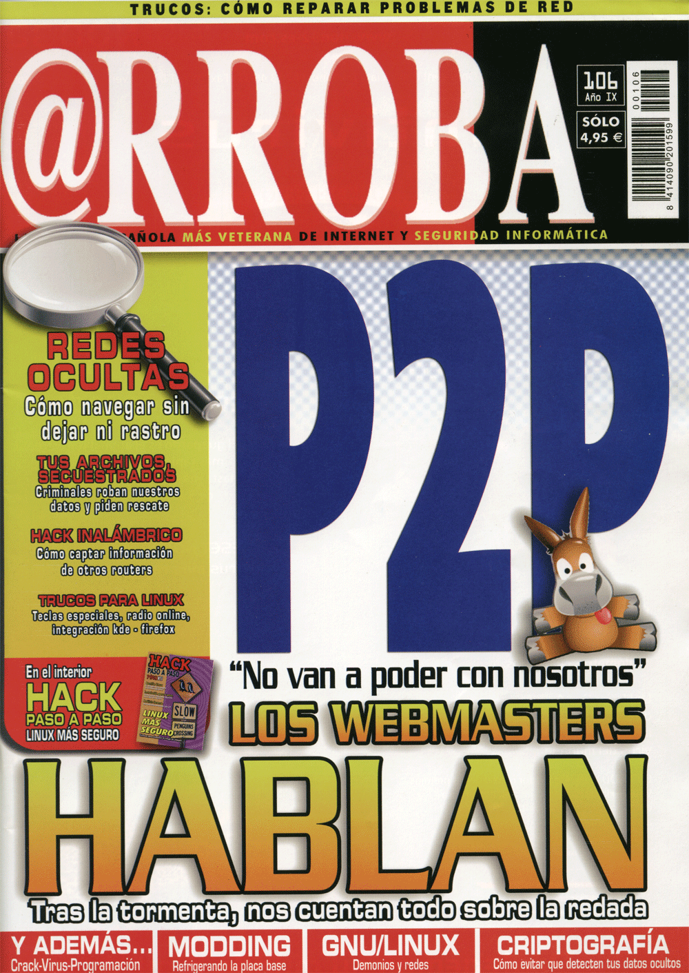 A raíz de la actuación policial contra las redes P2P del 09/04/2006 se entrevista a algunos Webmasters y se publica en la revista @rroba de julio del 2006.